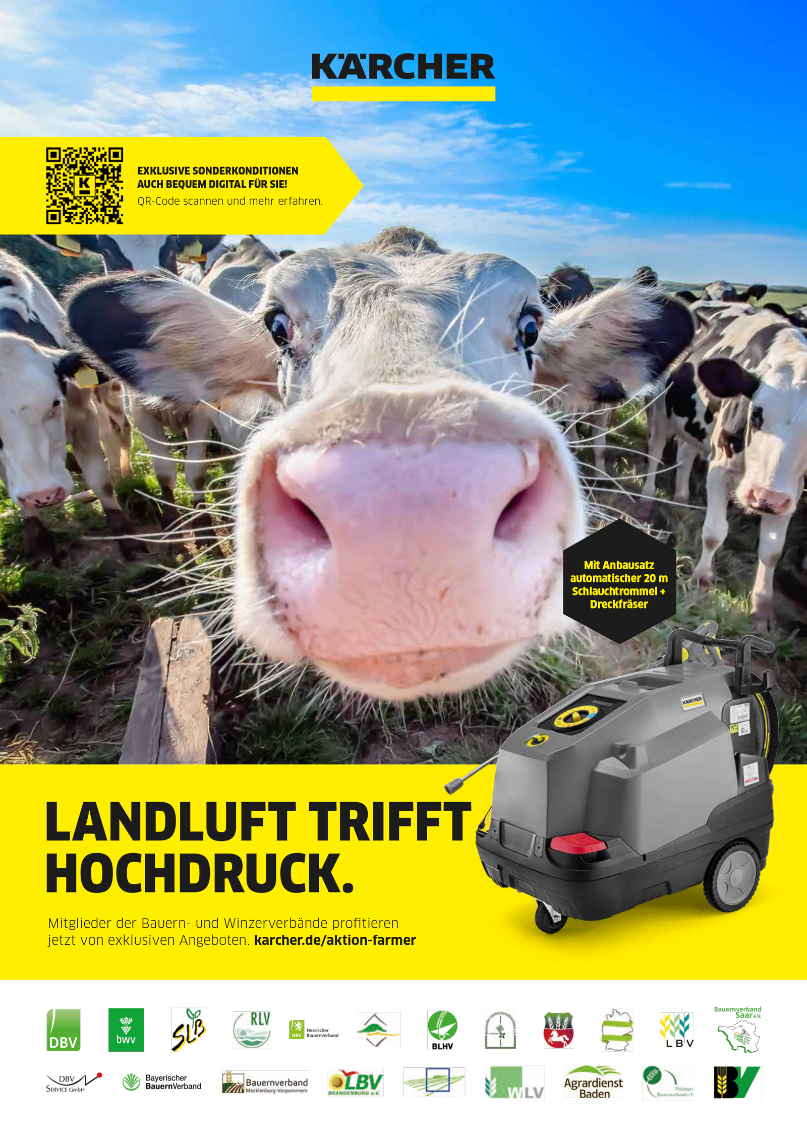 Unter diesem Motto bietet Kärcher den Mitgliedern in den deutschen Bauern- u. Winzerverbänden exklusive Reinigungsgeräte zu attraktiven Konditionen an.